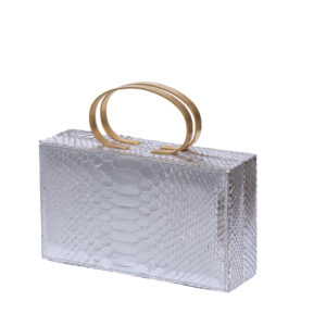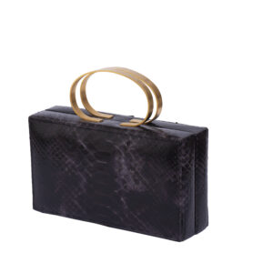 Our statement MIDNIGHT bag, featuring gold-plated handles. Designed to turn heads, it’s the stunning piece that completes your outfit.